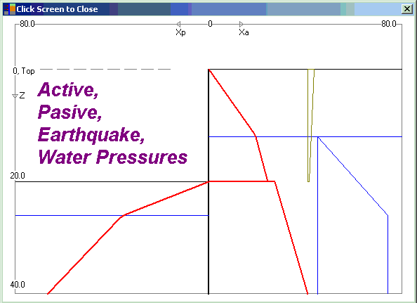 EarthPres can determine active, passive, and at-rest earth pressures. and then show pressure diagrams and failure surface. The program can determine the earthquake-induced pressure on walls using two methods: the Mononobe-Okabe method (recommended by AASHTO) and the Pseudo-dynamic method. The program also handles water pressure at verity conditions such as seepage or no-seepage, and bottom seal conditions.