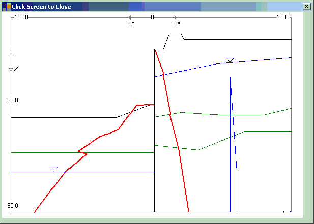 Wall friction is considered in the calculations. The pressure distribution, maximum pressure, total force, and failure wedge are determined and can be viewed instantly. The output can be exported to Shoring by a mouse click. This program is also included in the Shoring Suite package.